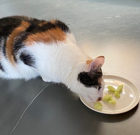 Ons laatste natuurverschijnsel is onze klein-kat Cleo. Ze logeert een paar weekjes bij opa en oma. Je wilt zo’n beestje verwennen, zoals echte grootouders dat nou eenmaal doen. Nergens maak je haar blijer mee dan met een paar stukjes komkommer. Zonder schilletje, dat dan weer wel. Maar zeg nou zelf, een poes die dol is op komkommer en sla. Het kan niet anders of Cleo is een kruising. Ik zal zo eens kijken of er bij ons klein-kanijn al knaagtandjes doorkomen. Wie weet, meld ik nog een natuurverschijnsel in deze verder komkommertijd…