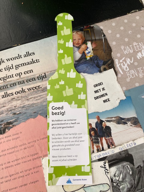 Afgelopen week hangt bovenstaande flyer uit onze oranje bak. Het gaat om het GOED BEZIG! Ik heb ‘m meteen een stukje ingescheurd om te weten of dit papier, dan wel plastic is. Het is papier. Van deze opsteker ben ik dan weer als een kind zo blij mee. Misschien kun je dat gevoel naar boven halen, dat je hart een sprongetje maakt. Zoals op de basisschool, in mijn geval de lagere school dat, als je netjes had geschreven, met rood mocht schrijven…