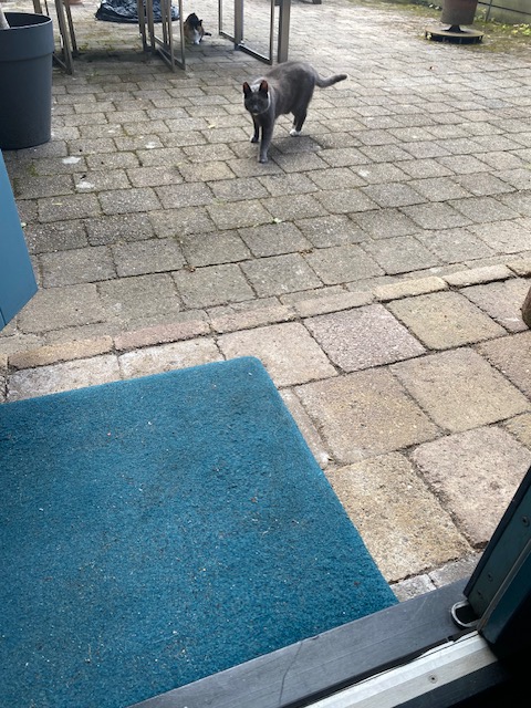 De beestenboel is sinds een kleine week uitgebreid met Luther. De trouwe blauwe Rus uit Beilen verblijdt ons. Er is een nieuwe uitdaging want er is een kans dat ze vriendjes maakt met de buurpoezen Venna en Fluks. Alle partijen zijn ingepraat. Venna en Fluks komen hier dagelijks over de vloer. Fluks heeft zijn pootje even door de kleine deuropening gestoken en lijkt heel benieuwd. Luther heeft een staart die drie maal zo dik is als in standje normaal. Fluks taait af.