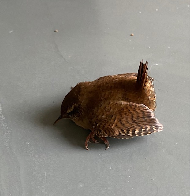 Ik ben beslist geen vogelaar en stuur bovenstaande foto’s naar een vriendin met kennis van zaken op dit gebied. Onbetwist een winterkoninkje, zo laat ze weten. Wat een bjoetie! Als de dag vordert en het donkerder wordt, floept de buitenlamp bij onze schuur steeds aan. Dus daar moet beweging zijn. En ja hoor, daar loopt onze buurpoes Fluks bij ons schuurtje, met zijn blik onafgebroken naar het bovenhangend vogelhuisje. Het kan goed zijn, dat het winterkoninkje een vogelhuisje zoekt ter bescherming tegen kou, zo lees ik op Wiki. Het hangt er mooi beschut en dit is een voorwaarde voor overwintering. Fluks laat zich aaien, gevolgd door een voor haar zo kenmerkend langgerekt miauwsolo. Ik laat haar weten dat er bij haar thuis lekkere brokjes klaarstaan. Ze slikt zich om haar bekkie met haar blik stoïcijns op het vogelhuisje. Ik kan praten als brugman. Mijn woorden komen niet echt binnen…
