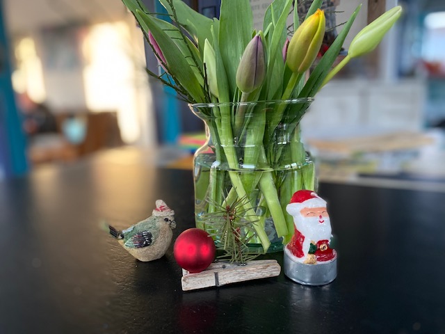 Kun jij het nog bijbenen? Ik kan me voorstellen van niet. Moet je nagaan dat ik altíjd zo met mezelf moet leven. In de nacht is het nog een graadje erger dan overdag. Gisteren, vandaag en morgen lopen in elkaar over. En dan vechten seizoenen ook nog eens om voorrang. Ik leg net mijn kerstmus en andere aan kerst verwante artikelen in het winterlaatje en zet de tulpen ervoor in de plaats. Het is linter…